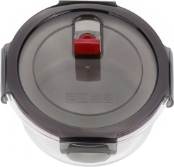 - átlátszó edény, szürke fedél piros elemmel