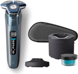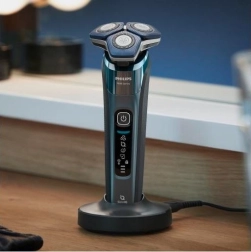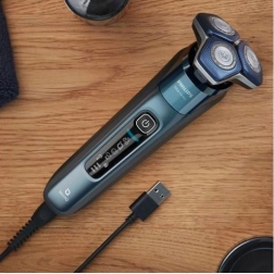 A praktikus LED-kijelző jelzi az akkumulátor állapotát és a tisztítás szükségességét. A modern kialakítás a nedves és száraz borotválás lehetőségével univerzális használatot biztosít zuhany alatt és a mosdónál is. A csomag része az állvány/tisztítómegoldás és egy utazótok az egyszerű karbantartás és biztonságos tárolás érdekében.