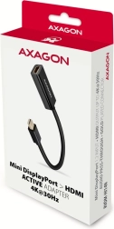 Az aktív mini DisplayPort → HDMI adapter, az AXAGON RVDM-HI14N megbízható megoldás HDMI kijelzők csatlakoztatására mini DisplayPorttal rendelkező számítógépekhez. Minőségi videóátvitelt biztosít egészen 4K/30 Hz-ig, és egyúttal digitális hangot is továbbít. Kompakt méreteinek köszönhetően szűk helyekre is alkalmas, és nem igényel külső tápellátást.
