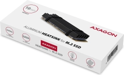 Univerzális passzív AXAGON hűtő 22 × 80 mm-es M.2 SSD-hez, amely hatékony hőelvezetést biztosít, akár 25 °C-kal csökkenti a hőmérsékletet és megakadályozza a thermal throttlingot. A bordázott alumínium ház és a két hővezető pad révén egy- és kétoldalas, SATA és NVMe meghajtókhoz is alkalmas.
