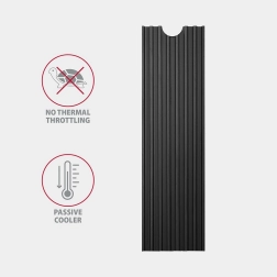 Fejlessze M.2 SSD-je hűtését a mindössze 3 mm magas, könnyű, bordázott alumínium hűtővel. A ventilátor nélküli passzív kialakítás halk működést biztosít, míg a két mellékelt hővezető párna optimális érintkezést tesz lehetővé egyoldalas és kétoldalas meghajtókhoz is.