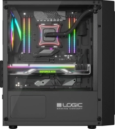 A LOGIC ATOS modern ház játékosoknak és irodába egyaránt. A légáteresztő előlapi panel optimális levegőbeáramlást biztosít, míg az oldalsó edzett üveg elegánsan felfedi az alkatrészeket és az ARGB világítást. A világítás vezérlése egyszerű – a felső panelen lévő RESET gombbal.