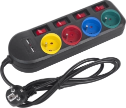 Minden színkódolt aljzat saját kapcsolóval rendelkezik, amely lehetővé teszi az eszközök áramellátásának szabályozását és növeli a biztonságot.