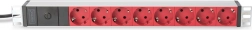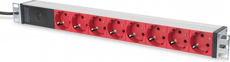 A professzionális DIGITUS PDU tápcsík 19″-es rackekhez készült, és megbízható áramelosztást kínál 220–240 V tartományban 50/60 Hz mellett. A nyolc piros Schuko (CEE 7/3) védőérintkezős aljzat 35°-kal el van forgatva, ami megkönnyíti a tápkábelek csatlakoztatását és helyet takarít meg az elosztószekrényben.