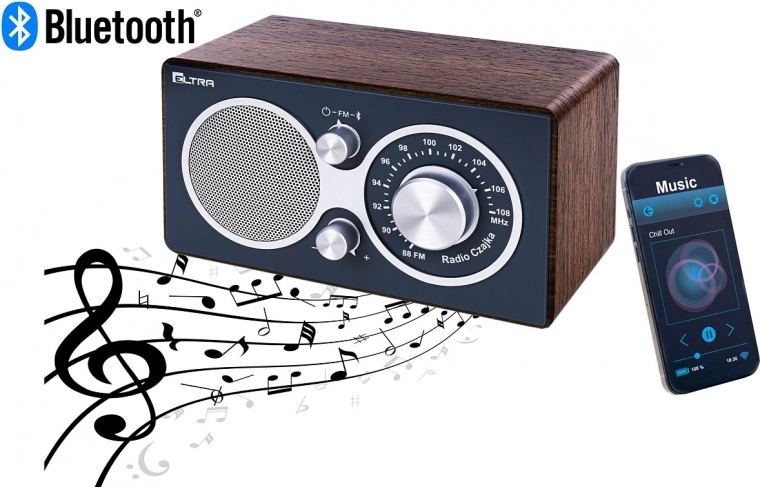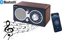 A Bluetooth-nak köszönhetően könnyedén lejátszhatja lejátszási listáit mobilról vagy táblagépről, míg az FM (URH) tuner megvilágított skálával átlátható hangolást biztosít gyengébb fényviszonyok mellett is. A forgatható teleszkópos antenna javítja a jelvételt, a mechanikus tekerőgombok pedig pontos és kellemes vezérlést adnak.