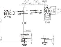 A kétmonitoros asztali kar 17-től 32 hüvelyk nagyságú monitorokhoz tervezett, maximális teherbírása 9 kg. Ez az elegáns és könnyű tartó: