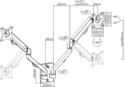 Ez az állítható kétmonitoros tartó maximális kényelmet és rugalmasságot biztosít azon felhasználók számára, akik a preferenciáiknak megfelelően szeretnék beállítani a monitorokat. Forgatható és kihúzható karjaival könnyedén változtathatja az olvasási szöget, valamint válthat a vízszintes és a függőleges mód között.