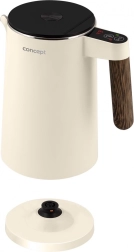 Vigyen stílust és kényelmet a konyhába. A Concept Norwood vízforraló a modern, matt vaníliaszínű megjelenést elegáns „fa” fogantyúval ötvözi. Az 1,5 l-es űrtartalommal könnyedén elkészíthet akár 6 csésze kedvenc italt. A Cool Touch felületű kettős fal érintésre hűvös marad, miközben a belső rozsdamentes acéltartály gyorsan és hatékonyan melegít.