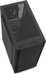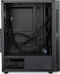 A borítás három USB-porttal van felszerelve. A fekete színű házstruktúra eleganciát kölcsönöz, a kábelrendező rendszer pedig lehetővé teszi a belső tér rendezetten tartását. Felül szellőzőrács található, amely helyet biztosít további 120 mm-es ventilátorok számára, alul pedig porfilter kapott helyet.