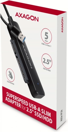 A kompakt és vékony AXAGON ADSA-FP2A adapter 2.5" SATA SSD-t vagy HDD-t csatlakoztat a számítógéphez USB-A 5 Gb/s kapcsolaton keresztül. Kínál gyors, akár 5 Gb/s adatátvitelt, egyszerű Plug & Play csatlakoztatást, támogatja a UASP, TRIM és S.M.A.R.T. funkciókat, valamint az USB-ről történő tápellátást külső forrás nélkül.