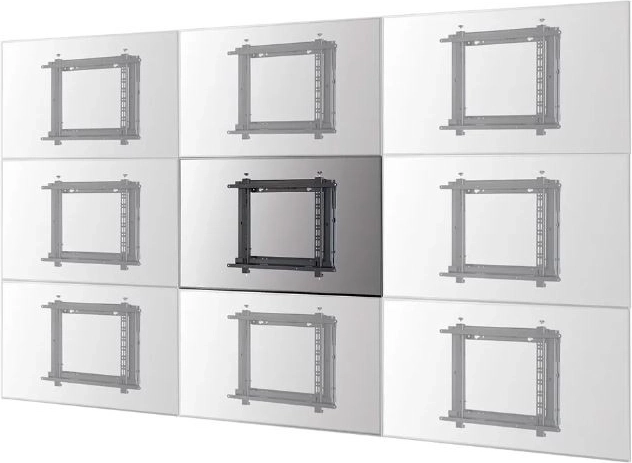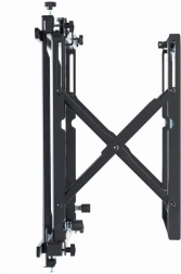 Neomounts by Newstar WL95-800BL1 egy kihúzható videófal-tartó legfeljebb 70 hüvelykes képátlójú kijelzőkhöz. A képernyő álló és fekvő tájolásban is felszerelhető, és szerszám nélküli mikroállítási lehetőséget kínál magasság, mélység, döntés és elforgatás tekintetében.