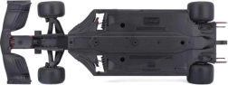 A modell a versenyautókra jellemző aerodinamikai formákkal és szponzori logókkal együtt valósághű megjelenést nyújt.