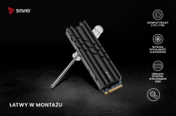 A Savio AK-60 hűtőt a szabványos 2280 formátumú M.2 SSD-khez tervezték, és a masszív, bordázott fémkialakításnak köszönhetően hatékonyan vezeti el a hőt. Biztosítja NVMe meghajtója stabil működését még nagy igénybevételnél is, például játék, nagy fájlok kezelése vagy videóvágás közben.