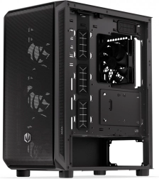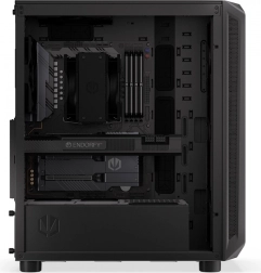 Az Endorfy Arx 500 Air a legnagyobb számítógépházaink egyike, méretei 486×228×429 mm. Ez a ház kényelmesen elhelyez egy maximálisan 179 mm magas hűtőrendszert, 7 ventilátort (amelyből 5 Stratus 140 PWM az alapkiszerelés része) és a piacon kapható legtöbb grafikus kártyát 350 mm-es hosszúságig. Az edzett üvegből készült átlátszó oldalsó panel lehetővé teszi a belső tér könnyű ellenőrzését.