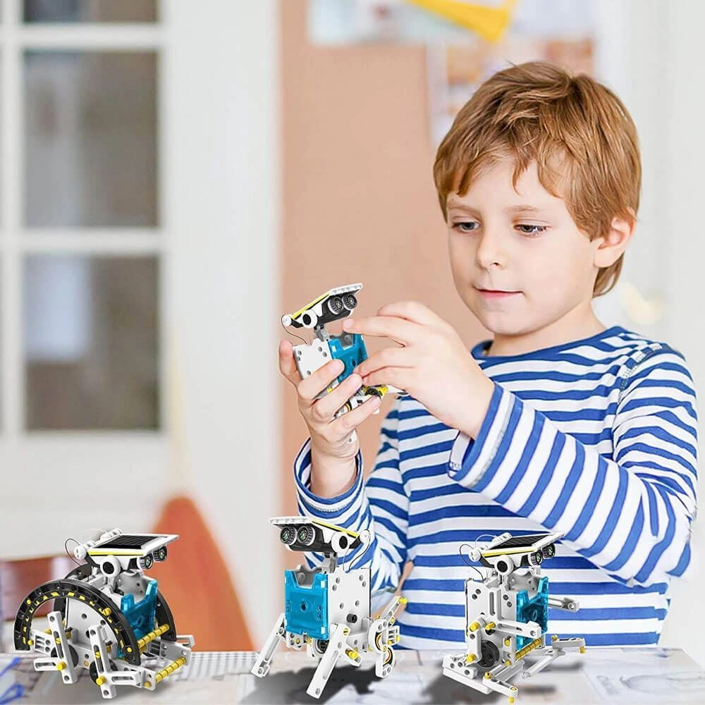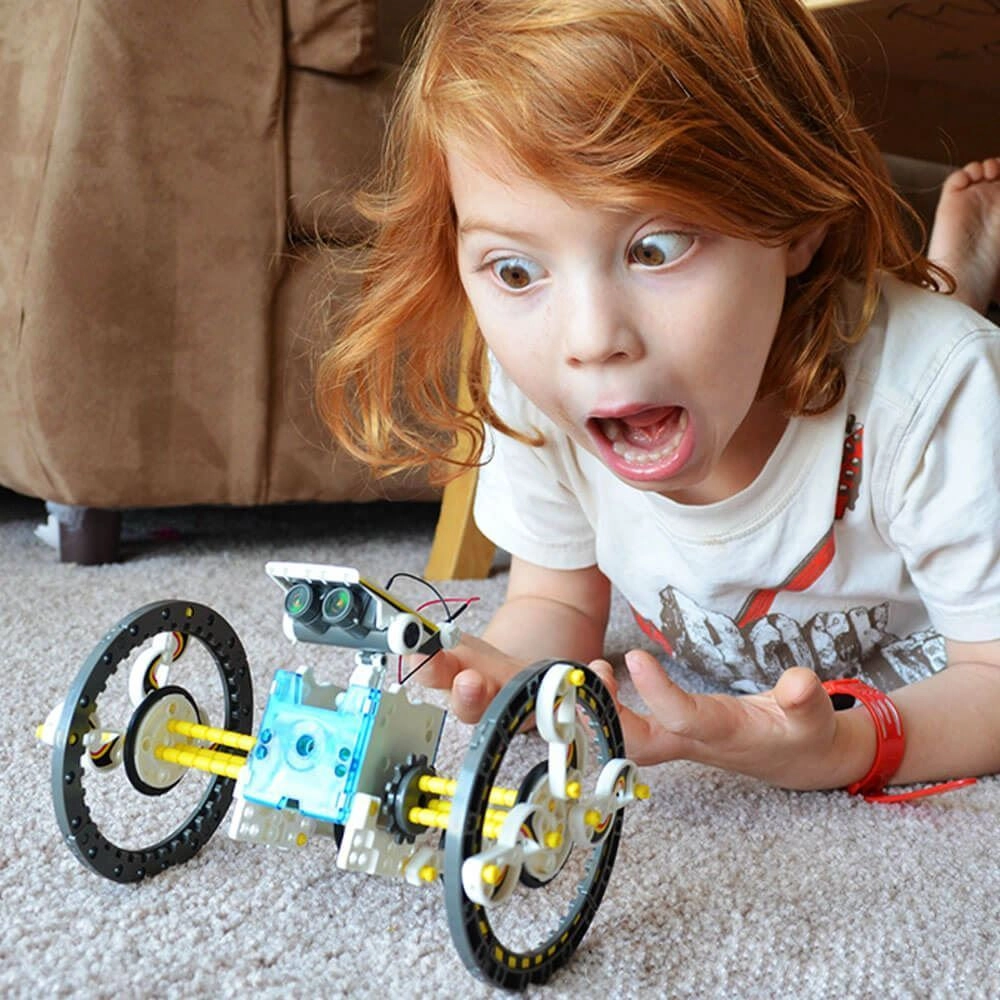 Fedezd fel a technika szórakoztató világát ezzel a oktató 14 az 1-ben napelemes építőkészlettel, amely megtanítja a gyerekeket a napenergia felhasználására különféle robot- és járműmodellek meghajtásához. A készlet akár 14 átépíthető modellt, két nehézségi szintet és szárazföldi illetve vízi üzemet kínál. Ideális a 10 évesnél idősebb kis mérnököknek. A megfelelő működéshez erős természetes napfény szükséges.