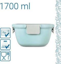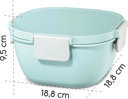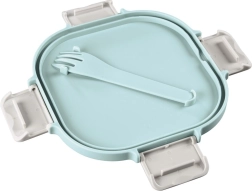 A fedél alsó részében villát talál, így minden egy helyen lesz az étkezéshez. A tészta, a zöldség vagy akár a rizs sem jelent gondot. Miután befejezte az ebédet, a doboz kényelmesen betehető a mosogatógépbe. A praktikus, klipszes zárás nagyon jól tömít, így nem kell attól tartania, hogy a tartalom váratlanul kiborul a táskájába.