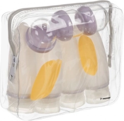 A palackokat úgy tervezték, hogy ne szivárogjanak, ezáltal védelmet nyújtanak a poggyászának. Szivárgás elleni védelem a készlet egyik legfőbb előnye.