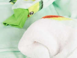 A takaró kapucnival kapható, amely párnaként is szolgálhat. A vastag medvebélésnek és az ujjak bordás lezárásának köszönhetően mindenhol biztosítva van a meleg.