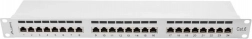 Patch panel nagy sebességű számítógépes hálózatokhoz a strukturált kábelezés befejezésére és szervezésére rack szekrényekben. Könnyű és hatékony kábelkezelést biztosít 24 árnyékolt RJ-45 kategória 6 porttal.