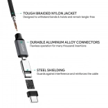 A tartós nejlon fonat védi a kábelt a megtöréstől és a kopástól, a 2 méteres hossz pedig kényelmet biztosít otthon, irodában és autóban. A Quick Charge 4.0/3.0/2.0 és az AiPower technológia kompatibilitása széles körű használatot tesz lehetővé minden USB‑C eszközzel.