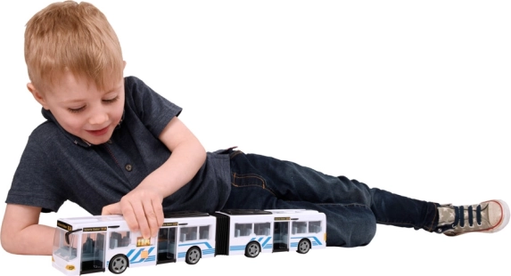 Ez a busz 46 cm nagy, és tökéletes kiegészítést nyújt a gyermek közlekedési eszközgyűjteményéhez. A csomag tartalmaz 2 LR44 / AG13 elemet, amelyek szükségesek az autóbusz funkcióinak működtetéséhez.
