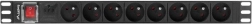 Masszív 1U PDU vízszintes, előlapi szereléshez 19"-os szekrényekbe. A levehető és forgatható szerelőfülek megkönnyítik a telepítést különböző pozíciókban, és stabil rögzítést biztosítanak.