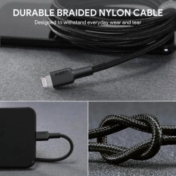 A nylon köpeny és az AUKEY masszív csatlakozói minimalizálják a kopást és megakadályozzák a gubancolódást, így hosszú élettartamot biztosítanak napi használat mellett.