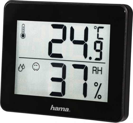 Tartsa otthonában az ideális klímát a praktikus Hama TH–1130 mérővel. Az áttekinthető kijelző mutatja a hőmérsékletet és a relatív páratartalmat, a komfortjelző pedig ikonokkal gyorsan figyelmeztet, hogy a feltételek optimálisak-e. A modern, karcsú dizájn bármely helyiségbe illik, az eszközt asztalra állíthatja vagy falra akaszthatja.