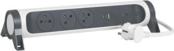 Ez a túlfeszültség-védelemmel ellátott hosszabbító három aljzattal a francia szabvány szerint és USB portokkal (A és C típus) rendelkezik. A kábel 12°-kal jobbra vagy balra elforgatható, ami növeli a kényelmet és a rugalmasságot használat közben. Kétszínű kialakítása fehér, fekete és antracit kombinációban modern és stílusos megjelenést biztosít.