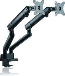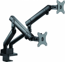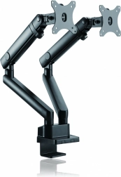 Praktikus kettős monitor tartó 32"-ig rugalmas mechanizmussal, amely lehetővé teszi a két monitor egyszerű felszerelését. Kivehető VESA adapterek és intelligens kábelvezetés biztosítják az egyszerű használatot és helyrendezést.