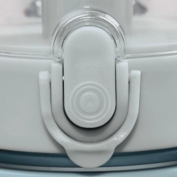 A zár biztonságos pattintással egy kézzel kezelhető, a szilikon tömítés pedig megbízhatóan megakadályozza a szivárgást. A széles nyak megkönnyíti a tisztítást és a jégkockák vagy citromszeletek behelyezését. Az anyag ellenáll a gyümölcssavaknak, ezért az italok íze hosszú távú használat mellett is tiszta marad.