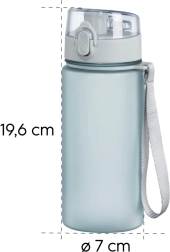 Praktikus, 500 ml űrtartalmú vizespalack egyérintéses gyorsnyitással, szivárgásmentes zárással és csuklópánttal. Ideális sporthoz, utazáshoz és mindennapi hidratáláshoz. A széles nyak lehetővé teszi gyümölcs vagy jég hozzáadását, a strapabíró falak pedig alkalmasak izotóniás és szénsavas italokhoz is.