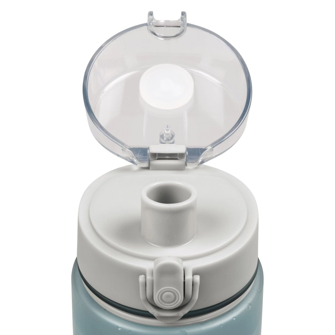 Az egyszerű, gombnyomásos nyitást különösen biciklizésnél vagy edzés közben fogod értékelni. A széles száj lehetővé teszi jég vagy gyümölcs hozzáadását, a nagy szívónyílás pedig kényelmes ivást biztosít. A szilikon tömítés megbízhatóan megakadályozza a nem kívánt szivárgást a táskába vagy hátizsákba.