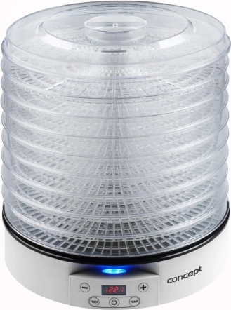 Fedezze fel a Concept SO2020 szárító varázsát, és készítse el kedvenc hozzávalóit otthon könnyedén és hatékonyan. A szárító praktikus LED kijelzővel van felszerelve, amelynek segítségével beállíthatja mind a szárítás idejét, mind a hőmérsékletét. A szárító kapacitása ideális gyümölcsök, zöldségek, gombák, gyógynövények és még sok más szárításához. Az 500 W teljesítményű motorral az élelmiszerek gyorsabban száradnak meg, mint gondolná.