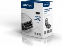 A Concept FAMILY 3 az 1-ben szendvicssütő segít elkészíteni reggelit, ebédet, uzsonnát és vacsorát. Három cserélhető lapjának köszönhetően sokoldalú és ideális családok számára, mivel egyszerre négy pirítóst is készíthet. Ez a spirálisan fejlett segítő gyors és egyszerű ételkészítést garantál.