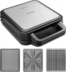 Cserélhető lapokat kínál szendvicsek, gofrik és grillezett ételek elkészítéséhez.