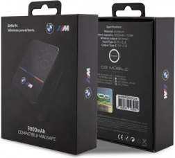 Ez a BMW M kollekció prémium, vezeték nélküli powerbankja az elegáns megjelenést a mindennapi praktikummal ötvözi. 3000 mAh kapacitásának köszönhetően megbízhatóan feltölti okostelefonodat, miközben a MagSafe mágnesek stabilan a kompatibilis telefonra rögzítik a powerbankot, és azonnal elindítják a vezeték nélküli töltést akár 5 W teljesítménnyel.