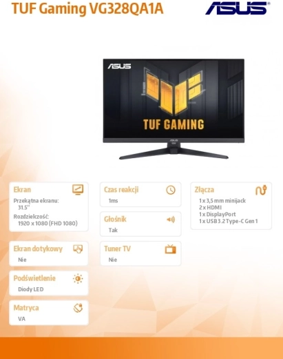 Az ASUS TUF Gaming VG328QA1A egy 32 hüvelykes játékmonitor olyan játékosoknak, akik stabil teljesítményt, minimális késleltetést és széleskörű beállítási lehetőségeket igényelnek. A TUF strapabíró felépítésének és modern dizájnjának köszönhetően remekül illik bármelyik gamer konfigurációhoz.