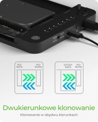 Dupla irányú klónozás: Egy gombnyomással tud klónozni 2,5"/3,5" SATA HDD/SSD és M.2 PCIe NVMe SSD között, megtartva az összes adat és konfiguráció tiszta másolatot.