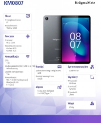 A Krüger&Matz Eagle 807 8,4'' IPS kijelzője magas felbontású 1200 x 1920 pixel, amely éles és világos képet biztosít.