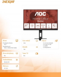 Fedezze fel az új AOC monitort 24 hüvelykes képátlóval, amely lenyűgöző képminőséget kínál az IPS technológiának köszönhetően, és modern csatlakozási lehetőségeket biztosít, beleértve a HDMI és DP csatlakozókat. Ez a monitor ideális munkára és szabadidős tevékenységekre is.