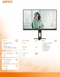 Fedezze fel a teljesítményt és a rugalmasságot az AOC 24P3CV monitorral. Ez a modern dizájnnal rendelkező monitor 23,8" IPS panellel rendelkezik, amely élénk és éles képmegjelenítést biztosít. Számos csatlakozási lehetőség, beleértve a HDMI-t, DP-t és USB-C-t, biztosítja eszközeivel való kompatibilitását.