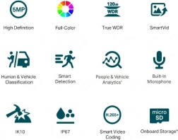 A kamera kiváló részleteket és teljes színes képet biztosít nappal és éjszaka is, nagyfelbontású érzékelővel és LED világítással.