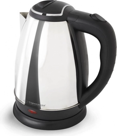 Modern, vezeték nélküli vízforraló rozsdamentes acélból, elegáns ezüst kivitelben. Akár 2200 W teljesítményt, nem melegedő ergonomikus fogantyút és automatikus kikapcsolást forrás elérésekor kínál. A beépített fűtőlapnak és a szárazonfutás elleni védelemnek köszönhetően a használat mindennap biztonságos és kényelmes.