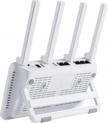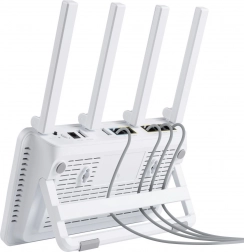 Az ASUS ExpertWiFi EBR63 nagysebességű kapcsolatot biztosít négy külső antennával, amelyek akár 2402 Mbps sebességet kínálnak az 5 GHz-es sávon és 574 Mbps-t a 2,4 GHz-es sávon. Ez a router akár 100 aktív eszközt támogat, ezzel biztosítva a zökkenőmentes és stabil csatlakozást az egész vállalkozás számára.