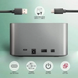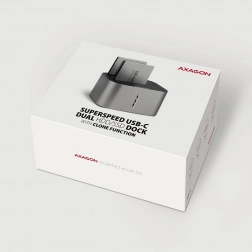 Univerzális AXAGON dokkolóállomás két 2.5"/3.5" meghajtóhoz, gyors csatlakozással USB-C 5 Gb/s felületen, SATA 6 Gb/s és UASP támogatással, valamint kényelmes offline klónozással számítógép nélkül. Használja ki az SSD teljesítményét, a TRIM funkciót, a S.M.A.R.T. olvasást és az automatikus energiatakarékos üzemmódot. Masszív alumínium ház, LED jelzések és a csomagban található USB-C–USB-A kábel az egyszerű és megbízható használatért.
