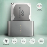 Az offline klónozás funkció lehetővé teszi egy teljes lemez lemásolását PC-csatlakozás nélkül – csak helyezze a forrást az A foglalatba, a célt a B foglalatba, nyomja meg a gombot, és kövesse a folyamatot a LED jelzőkön. Ideális rendszerköltöztetéshez régi HDD-ről új SSD-re (Windows, macOS, Linux, Chrome OS).