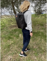 Puha, légáteresztő és állítható vállpántok biztosítják a kényelmet hosszabb viselés során is. A masszív felső fogantyú megkönnyíti a kezelést.