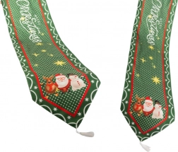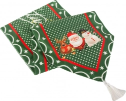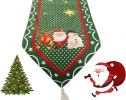 Tedd otthonossá az ünnepi terítéket egy stílusos, zöld színű, 205 × 35 cm méretű asztali futóval. A Mikulást, hóembert és rénszarvast ábrázoló minta, a piros szegély és a dekoratív rojtos végek ünnepi hangulatot kölcsönöznek a terítésnek, miközben védik az asztal felületét a foltoktól és a karcolásoktól.
