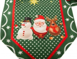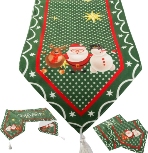 A zöld alap csillagokkal és a Mikulás, a hóember és a rénszarvas figuráival azonnal feldob bármilyen asztalt, és kiemeli a karácsonyi atmoszférát.